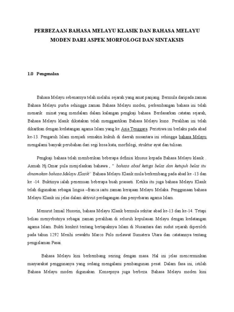 Perbezaan Bahasa Melayu Klasik Dan Bahasa Melayu Moden Pdf